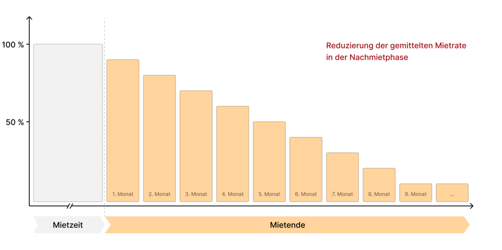 Sofern keine Kündigung erfolgt, reduzieren sich die Monatsmieten für die jeweiligen Vertragslaufzeiten wie in der nachfolgenden Grafik dargestellt.